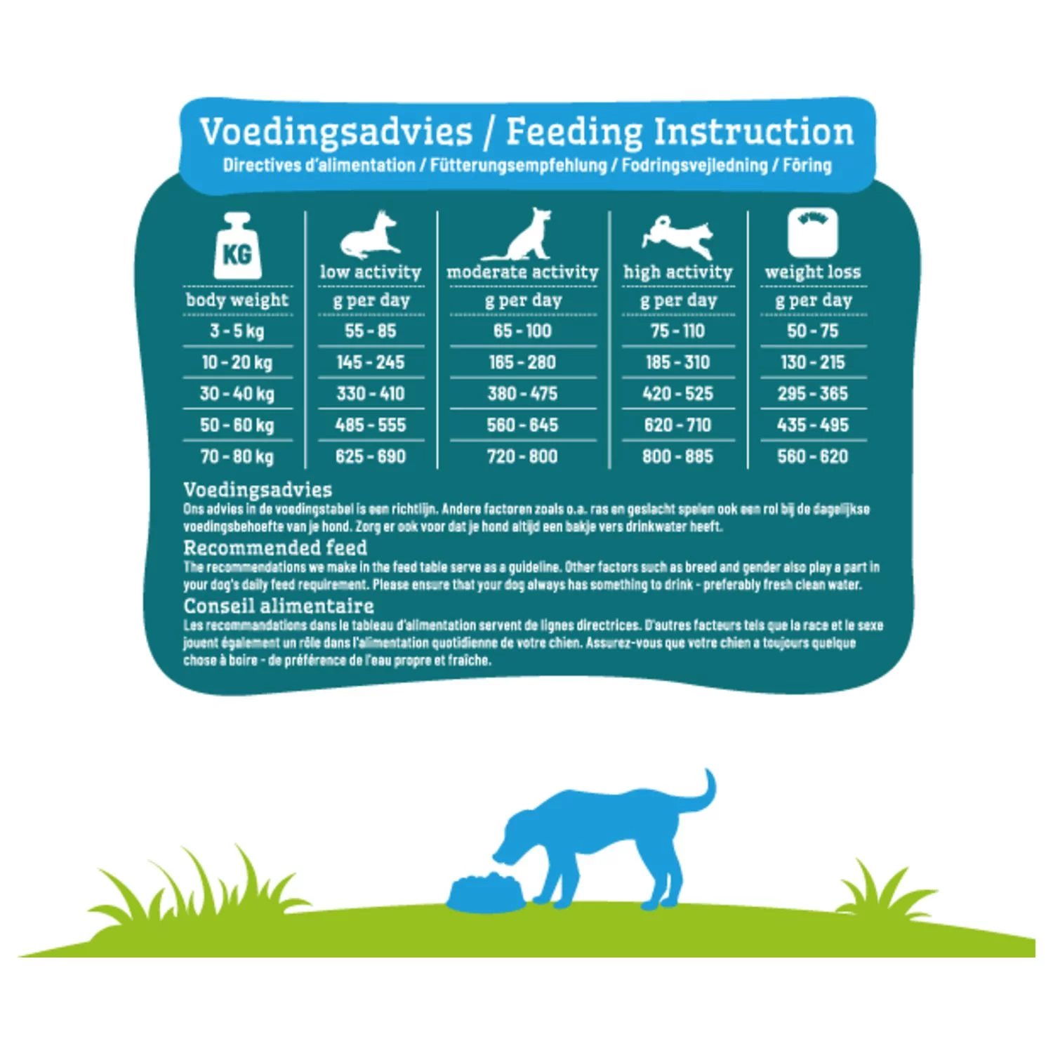 Weight Control bevat geen tarwegluten en is zeer goed verteerbaar. Het voer is bereid met Nederlandse kip, MSC vis en Britse lam. Deze unieke combinatie van lokale en duurzame ingrediënten zorgt voor een compleet aanbod aan bouwstoffen, afgestemd op de specifieke behoefte van je trouwe viervoeter. Ook bevat het voer geen kunstmatige geur-, kleur- en smaakstoffen of chemische antioxidanten.