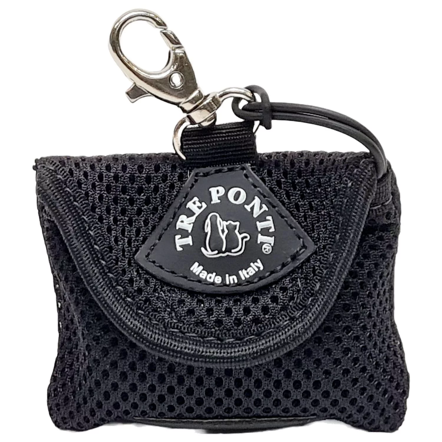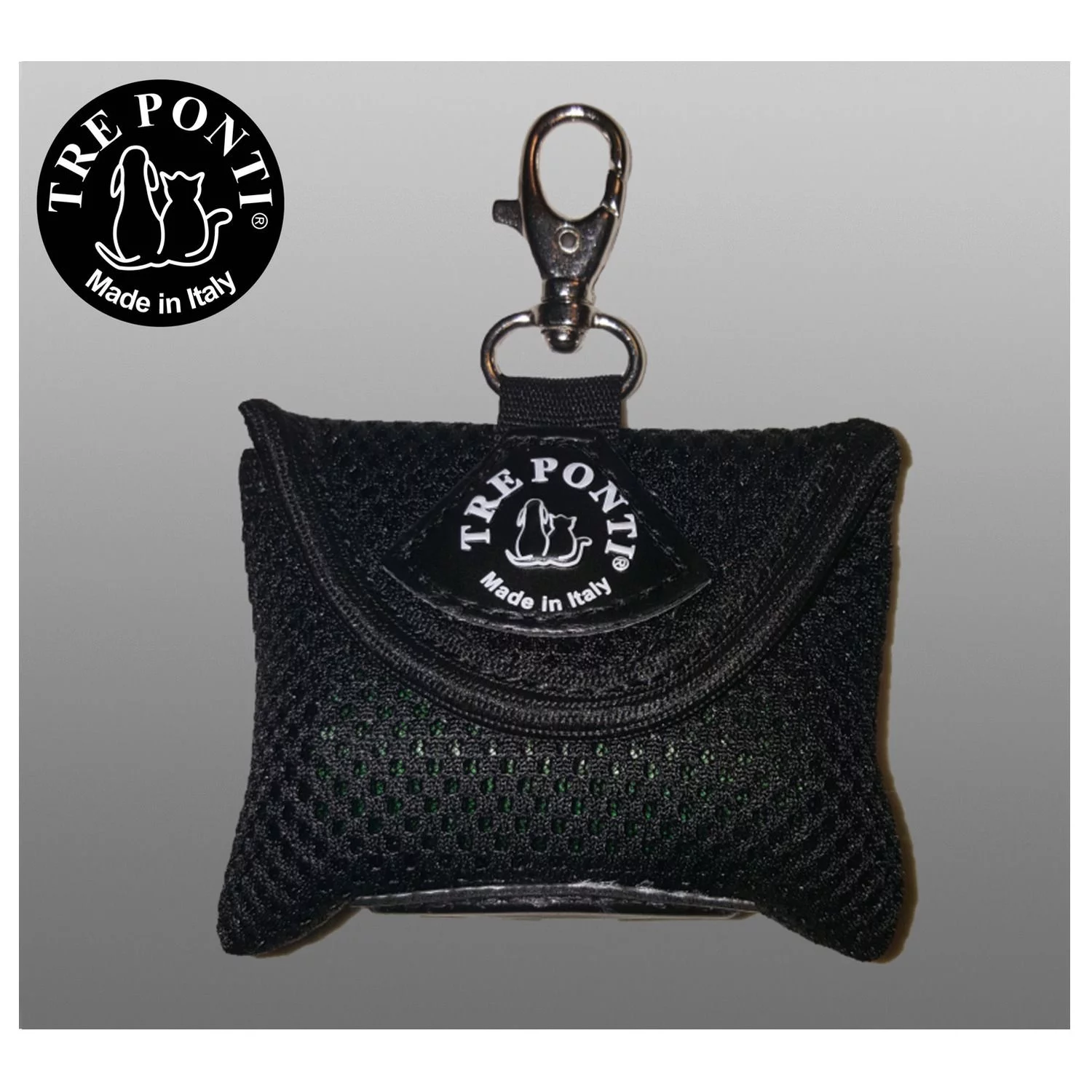 De poepzakjeshouder van Tre Ponti heeft een opening met klittenband aan de voorzijde. Hier kan je gemakkelijk de zakjes in en uit doen. Vervolgens kan je uit de onderzijde een poepzakje halen, één per keer. De zakjeshouder is gemaakt van een fijn meshmateriaal en bevestig je makkelijk met een haakje aan de looplijn van je hond, of bijvoorbeeld aan je jas of tas.