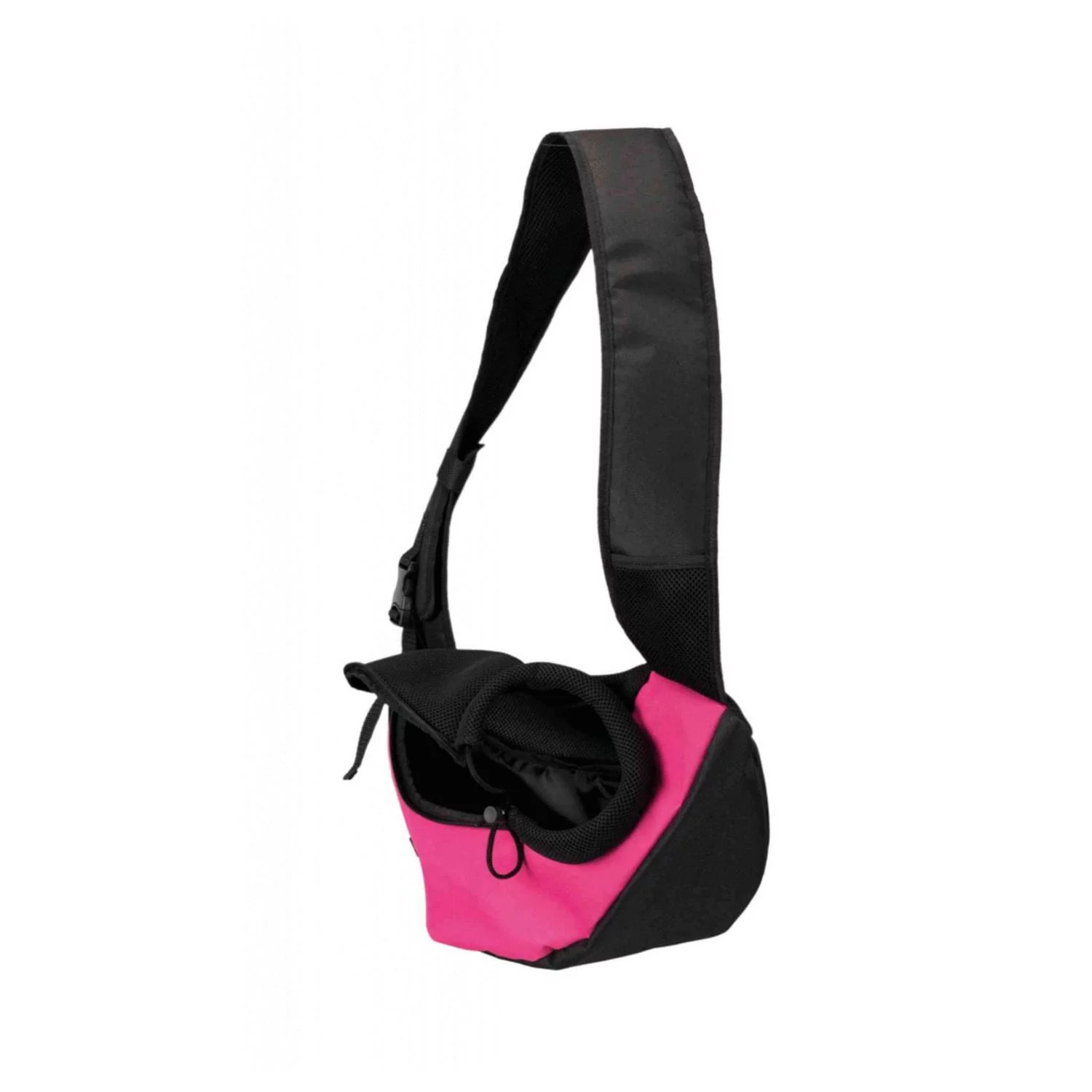 De Buikdrager Sling van Trixie heeft een formaat van 50 x 25 x 18 cm en is verkrijgbaar in de kleur zwart met roze. De tas kan een hond van maximaal 5 kg vervoeren.