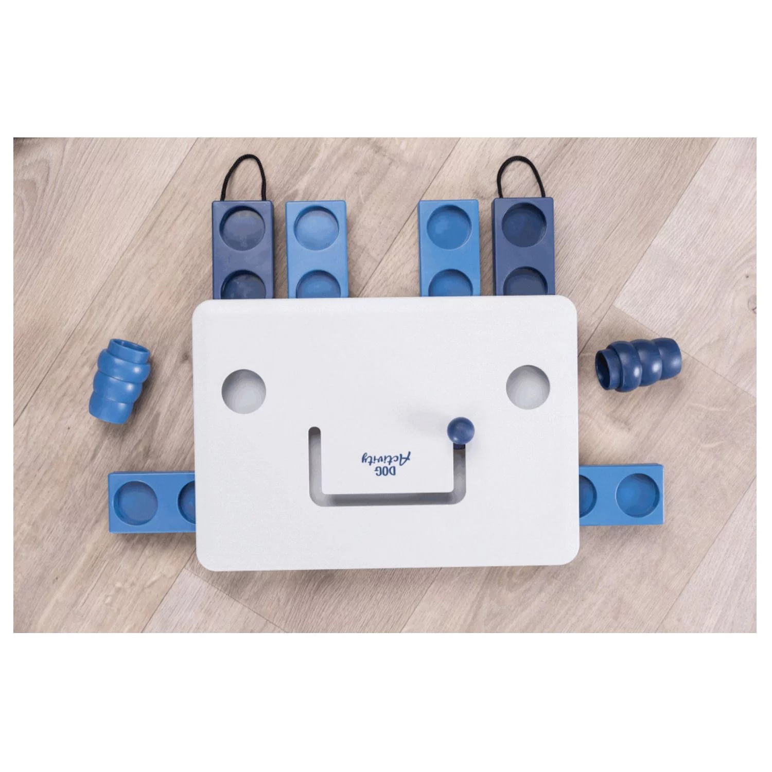 Het spel bestaat uit een bord met 2 kegels en diverse kommetjes en lades. Door verschillende openingstechnieken te gebruiken kan je hond bij zijn beloning komen, zoals de dagelijkse brokjes of heerlijke snoepjes. Al met al wordt je hond uitgedaagd, eet hij langzamer en eet hij minder, wat allemaal bijdraagt aan een gezonde spijsvertering en een goed gewicht.