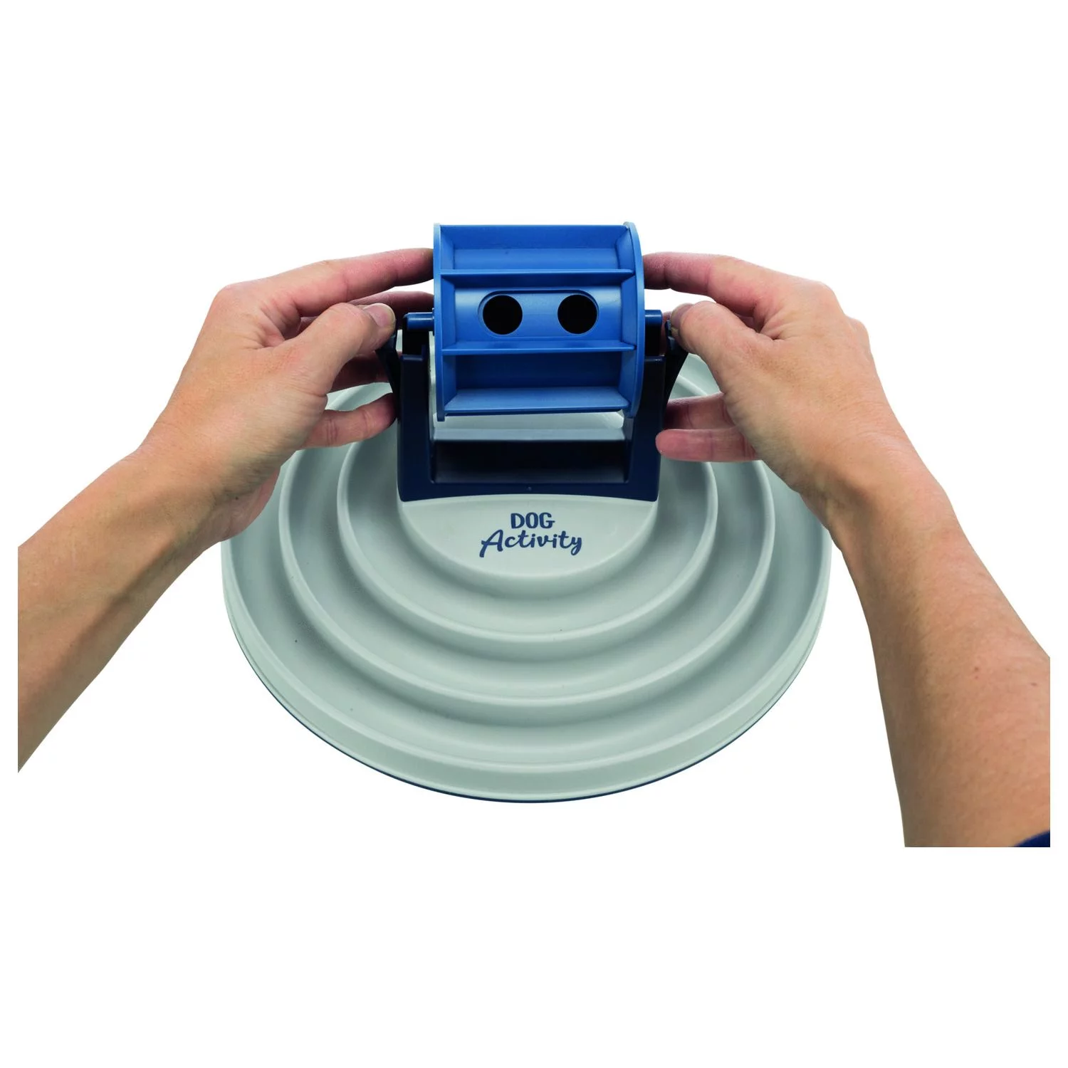 Het spel bestaat uit een standaard met een draaibaar element met gaten. Door met de poot tegen de roller aan te slaan, valt er lekkers in de groeven van het product; zoals de dagelijkse brokjes of heerlijke snoepjes. Al met al wordt je hond uitgedaagd, eet hij langzamer en eet hij minder, wat allemaal bijdraagt aan een gezonde spijsvertering en een goed gewicht. De opening waaruit de brokjes vallen is in te stellen in verschillende groottes.
