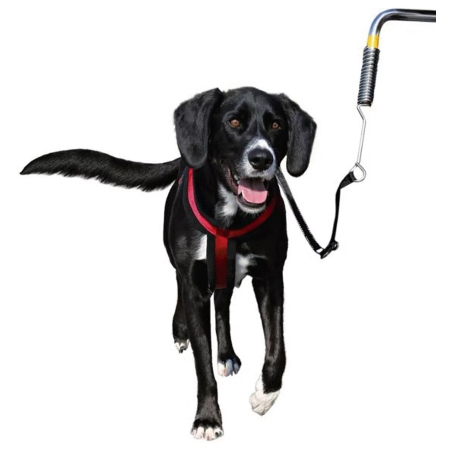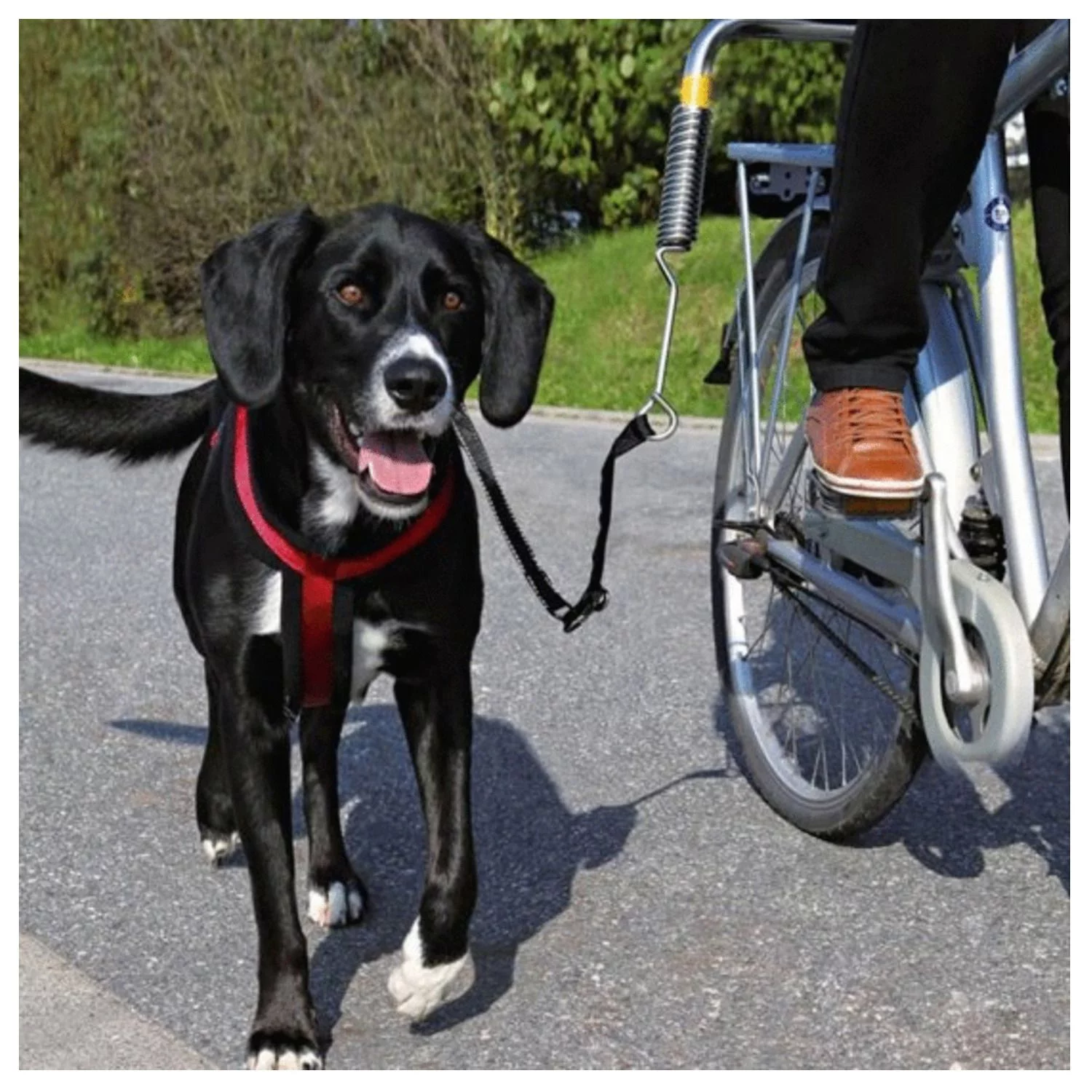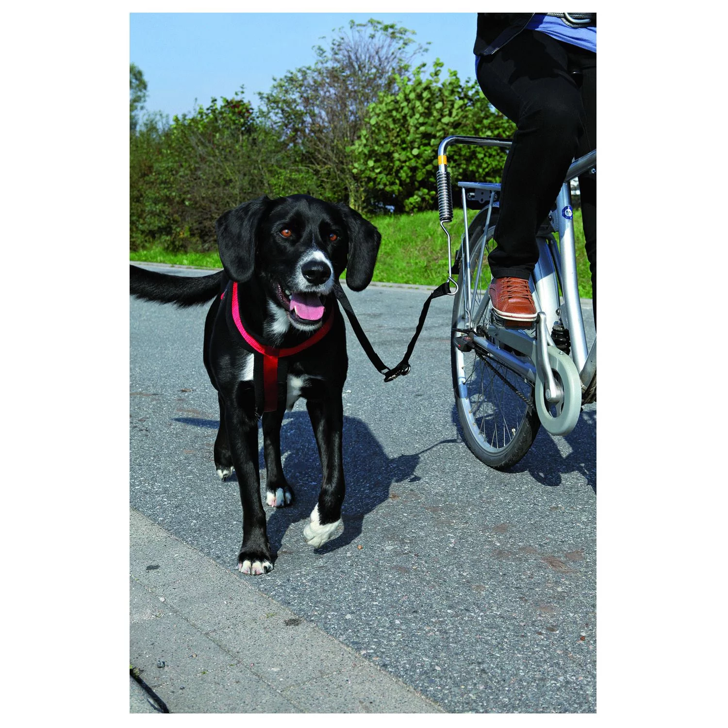 Je monteert de zet aan de zadelpen van je fiets en de stang steekt iets uit, zo blijft je hond altijd op gepaste afstand naast je lopen aan de juiste kant van de weg. Uiteraard zal de set de fiets zelf niet beschadigen. De fiets set zorgt er onder andere voor dat rukkend trekken door je hond wordt getemperd dankzij de stabiele veer. Mocht je hond ineens héél hard trekken, dan schiet de riem los van de fiets (deze zit vast met stevig klittenband) om te voorkomen dat je omver wordt getrokken. De set bestaat uit een: