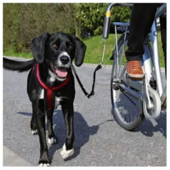Niks is leuker dan samen fietsen met je hond, maar je moet wel uitkijken dat de lijn van je hond niet tussen de spaken komt of dat je hond voor de fiets rent. Met de Fiets Set van Trixie kan je veilig met je viervoeter op pad.