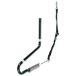 bestaat uit afstandhouder met bevestiging voor zadelpen, aanlijn-systeem en spiraalveer