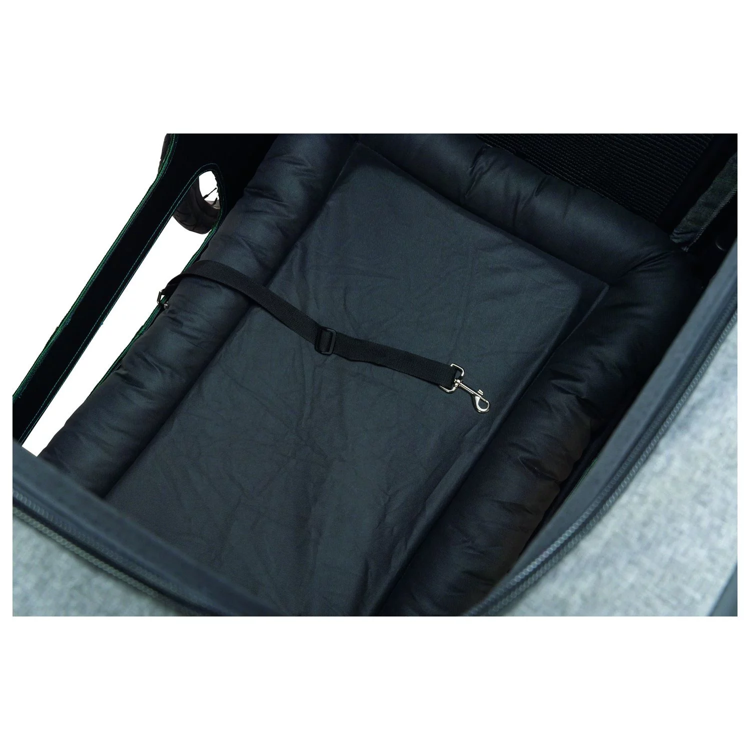 Deze mooie hondenfietskar is voorzien van een comfortabel interieur. Het kussen is namelijk gevuld met visco-elastisch schuim, wat zich vormt naar het lichaam van je hond voor extra comfort tijdens de rit. Het kussen is ook uitneembaar en kan worden gewassen, zodat je hond altijd in een schone omgeving zit.