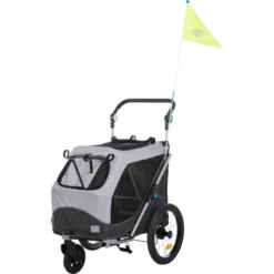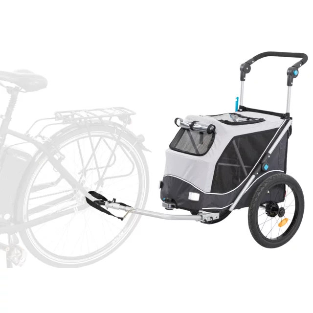 De Fietskar is grijs van kleur en is geschikt voor honden van maximaal 15 kg, de kar heeft de volgende eigenschappen: