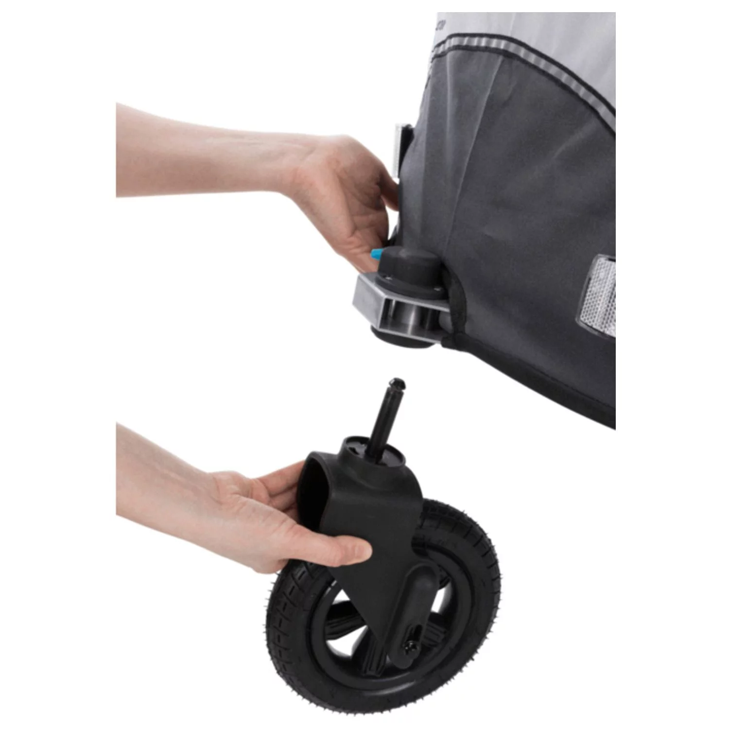 Let op: het voorwiel op de afbeeldingen is niet inbegrepen bij deze fietskar. Je dient deze los te bestellen. Bestel hier het bijpassende Jogging Wiel.