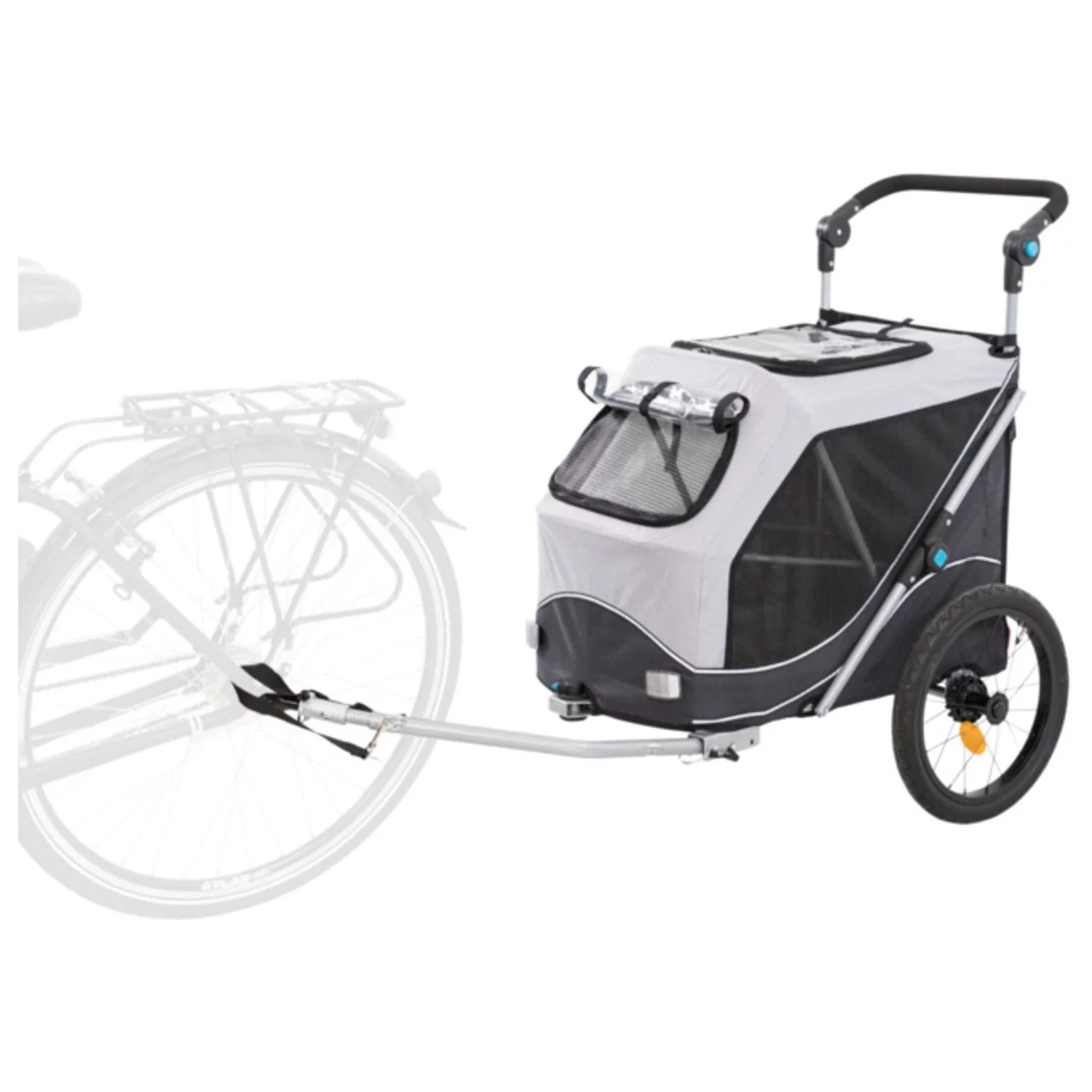 De Fietskar is grijs van kleur en is geschikt voor honden van maximaal 22 kg, de kar heeft de volgende eigenschappen: