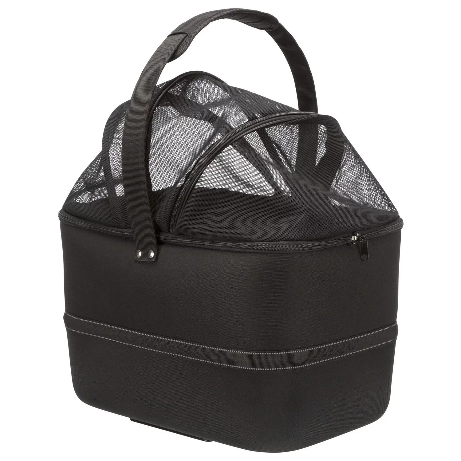 eenvoudig eraf te nemen door een klik-snelsluiting en als transportbox te gebruiken. , met handvat , met gaas-afdekking , met regenkap , met geïntegreerde korthouder , reflecterende elementen , met uitneembare, gevoerde bodemplaat (pluche bekleding) , vormvast EVA , kleur: zwart , in overeenstemming met het dierenwelzijn als bedoeld in § 18 (AT)