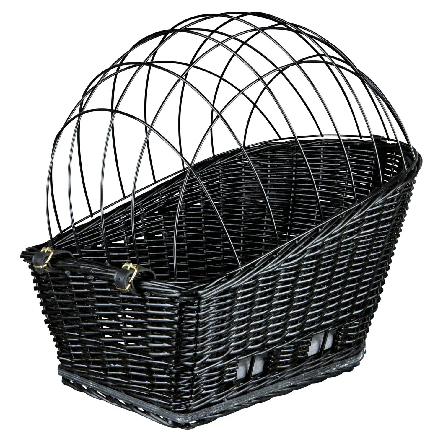 De mand zelf van deze fietsmand is gemaakt van wilgenteen. De draadkoepel bovenop is gepoedercoat. Je kan de mand met behulp van het mechanisme vastmaken aan je bagagedrager. De koepel kan je met riempjes los en vast maken. Dankzij de koepel zit je hond veilig in de mand en kan deze er niet uitspringen, toch kan hij tegelijkertijd wel genieten van zijn omgeving met de wind in de haren! Door de twee uitsparingen aan de zijkant is de mand ook makkelijk op te pakken en te dragen.