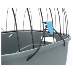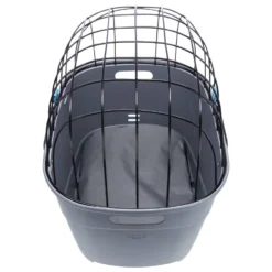 De mand zelf van deze fietsmand is gemaakt van kunststof. De draadkoepel bovenop is gepoedercoat. Je kan de mand met behulp van het mechanisme vastmaken aan je bagagedrager. Dankzij de koepel zit je hond veilig in de mand en kan deze er niet uitspringen, toch kan hij tegelijkertijd wel genieten van zijn omgeving met de wind in de haren! Door de twee uitsparingen aan de zijkant is de mand ook makkelijk op te pakken en te dragen.