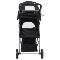 De opvouwbare buggy heb je binnen no-time in elkaar gezet dankzij het snelle inklapsysteem. De buggy heeft een grote achterklep voor het in- en uitstappen. Dankzij de 2 korthouders zorg je ervoor dat je hondjes in de buggy blijven zitten, ook wanneer deze open is geritst. Met de duwstang kan je de buggy voortbewegen. Verder heeft de buggy meerdere ritssluitingen waardoor deze deels of geheel afsluitbaar is.