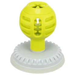 Je hond moet vervolgens het lekkers oplikken uit de bal. Dit zoeken en snacken werkt kalmerend. Je viervoeter moet goed nadenken en geconcentreerd werken voor het lekkers, zonder dat hij te veel eten binnenkrijgt. De bal heeft een zuignap waarmee je deze kunt vastmaken aan gladde oppervlakken. Zo is de bal ook op een gladde muur te monteren! Het speelgoed is gemaakt van kunststof en TPR.
