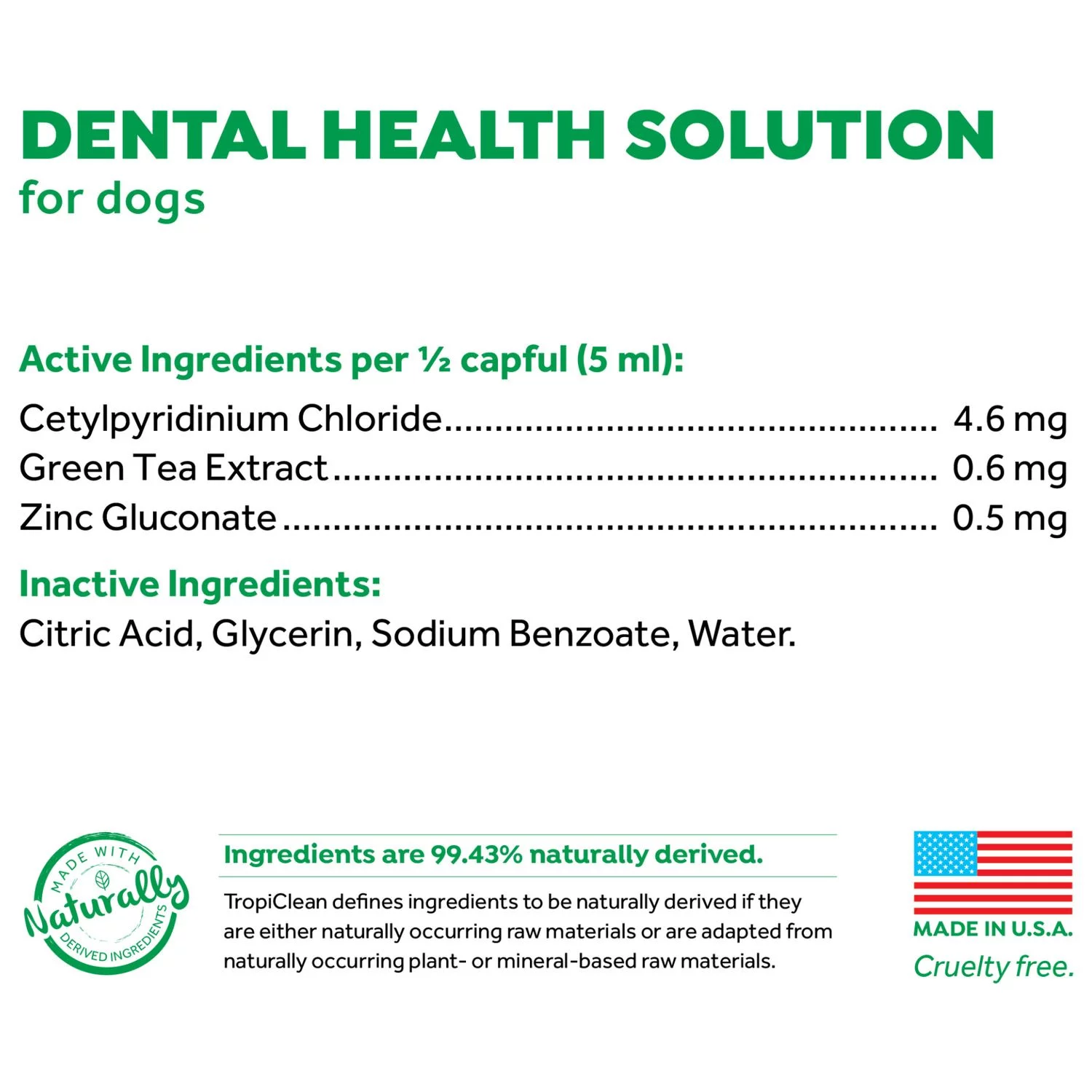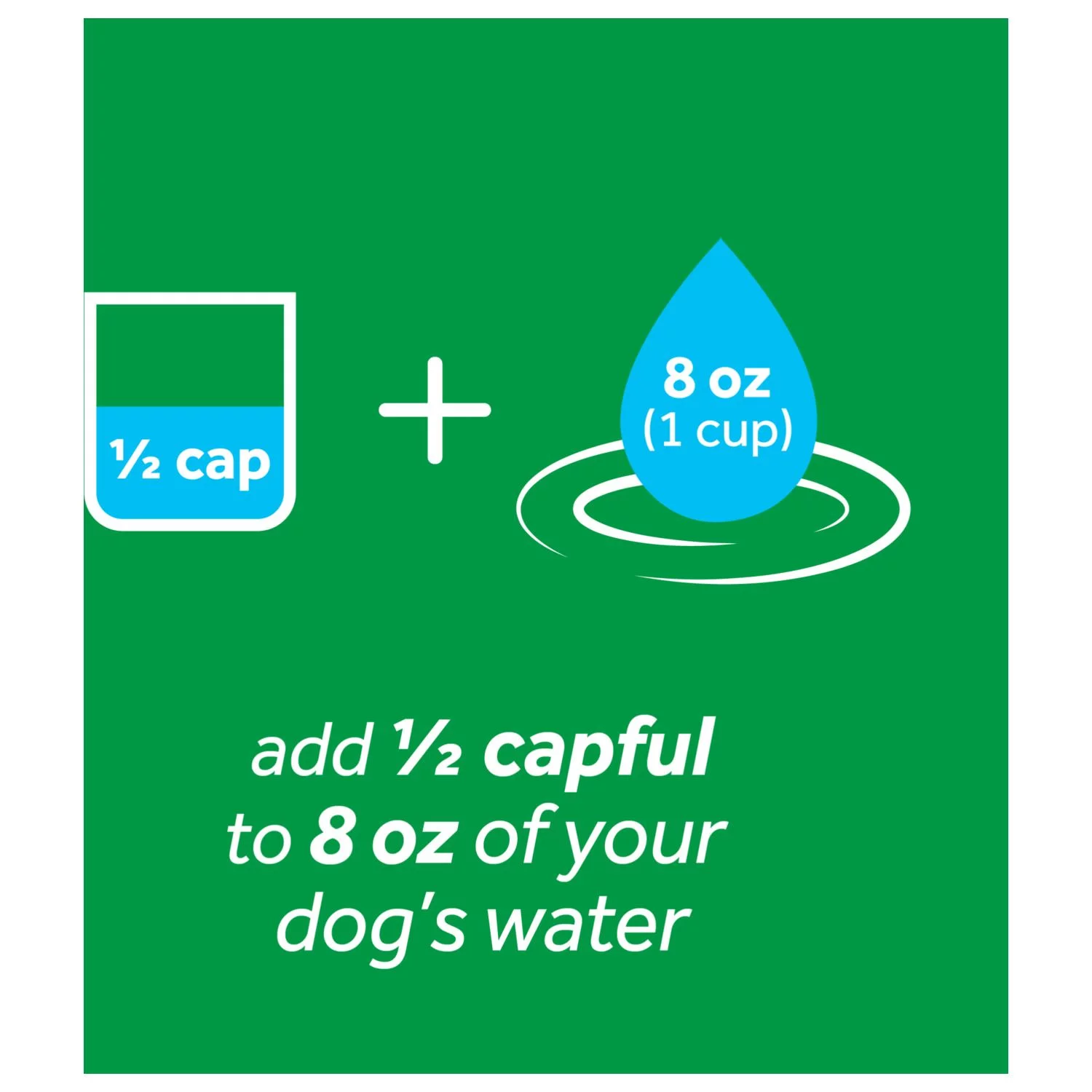 Oral Care Water Additive zorgt voor een frisse adem tot wel 12 uur lang, het enige wat je hoeft te doen is een dopje Water Additive toe te voegen aan de waterbak wanneer je deze ververst. Binnen 14 dagen zal je al merken dat je hond een frissere adem heeft. Nog een pluspunt is dat Oral Care Water Additive het gebit beschermt tegen tandplak en tandsteen. Het mondwater bevat onder andere groene theebladeren, heeft een neutrale smaak en is parfumvrij.
