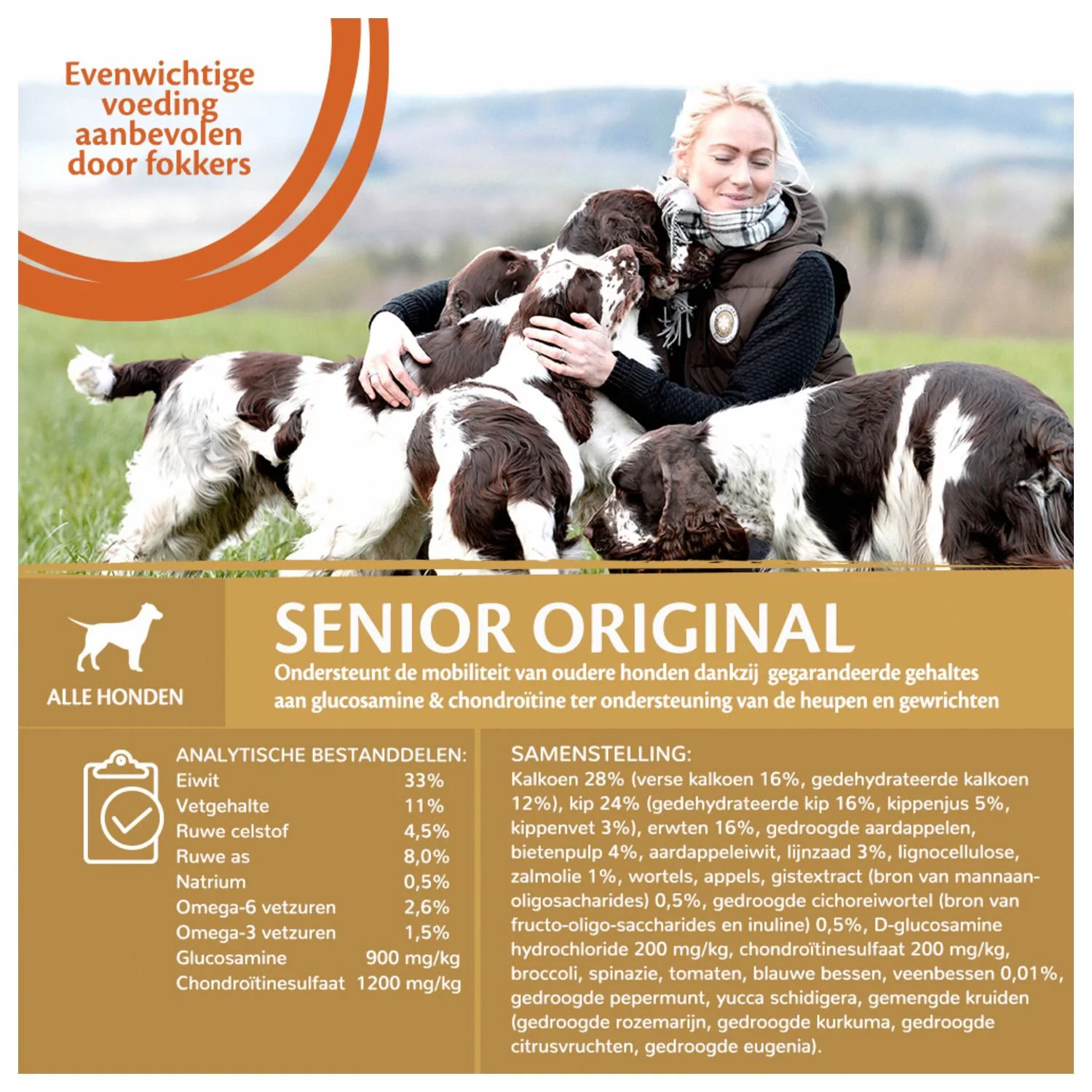 Senior Original All Breeds is verkrijgbaar in 1,8 kg en 10 kg.