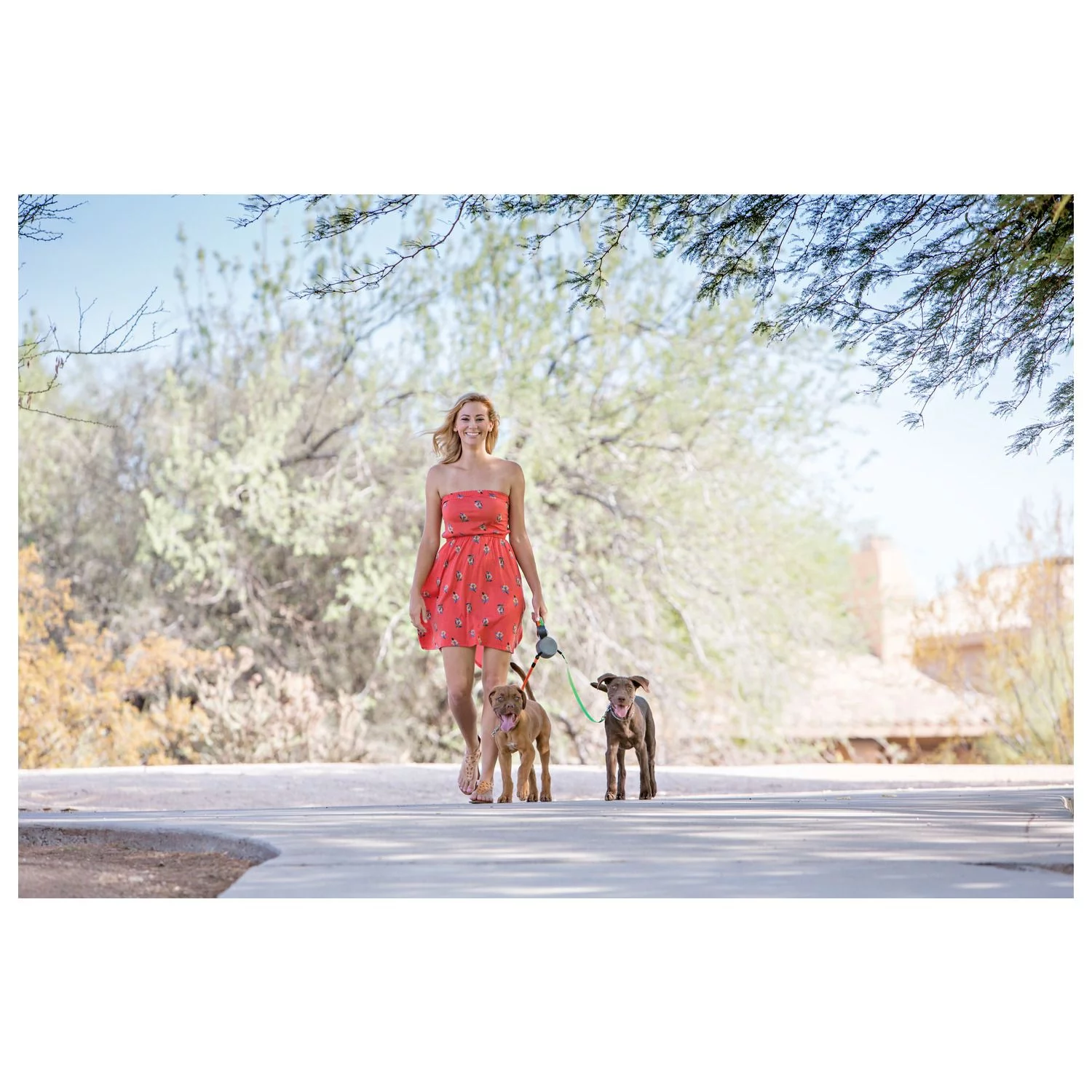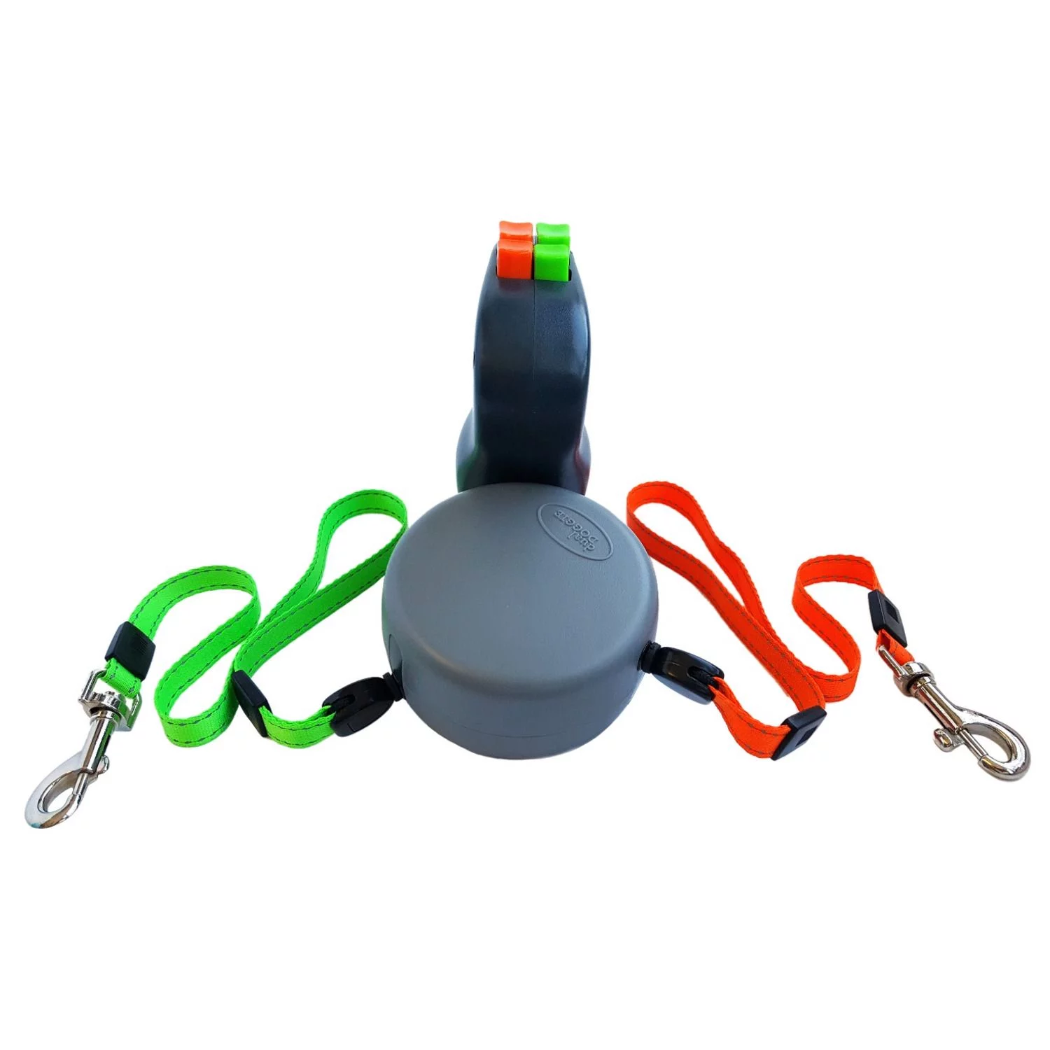 Deze anti-klit oprolbare riem geeft je de mogelijkheid om twee honden tegelijkertijd uit te laten terwijl je beiden honden individueel onder controle heeft!