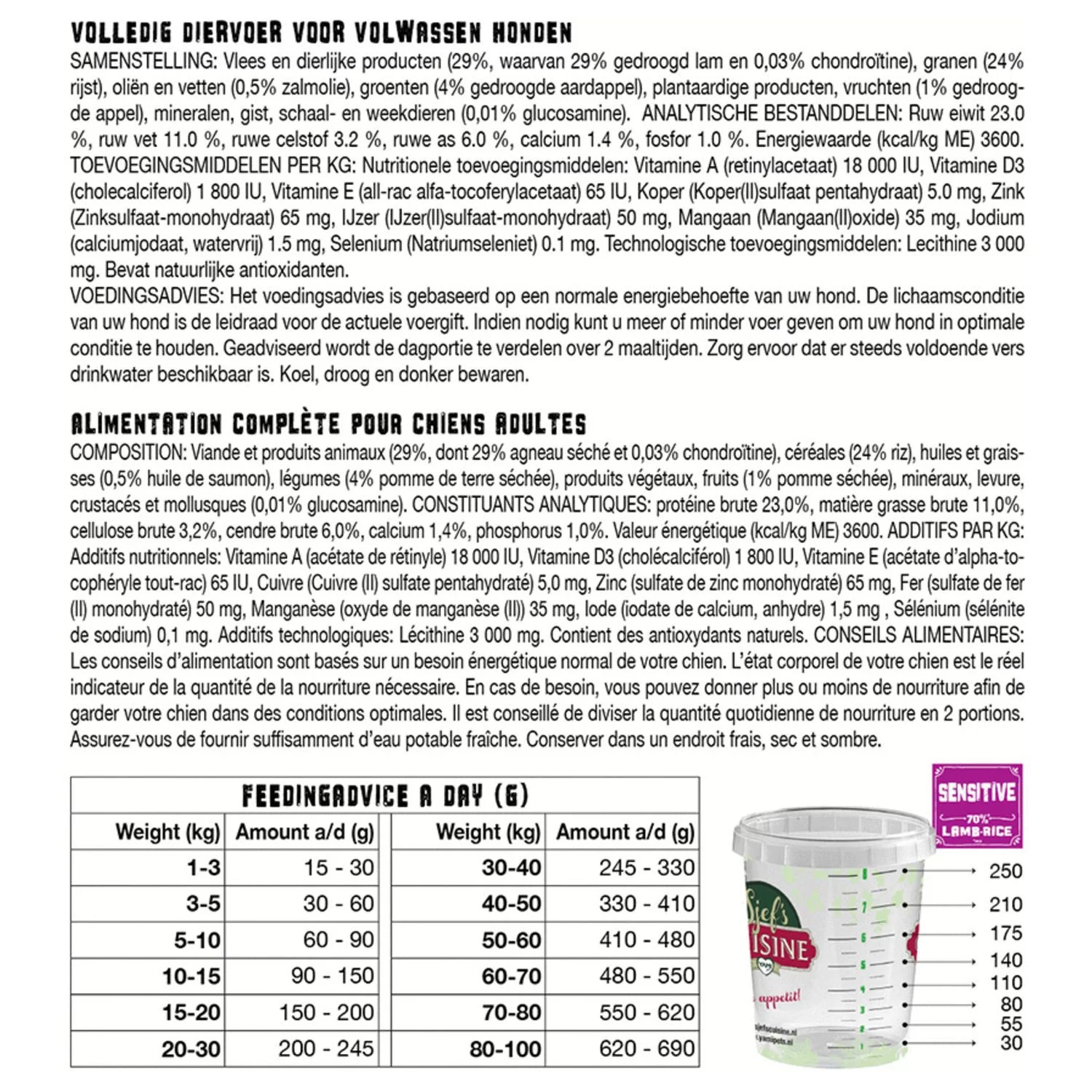 Sjef’s Cuisine Sensitive Lam is verkrijgbaar in 3 kg en 12,5 kg.